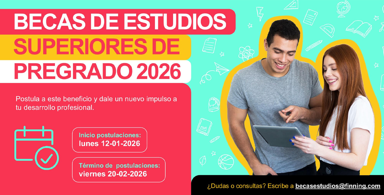 Estimados socios (as) dejamos a continuación informativo para postular a las Becas de Estudios Superiores de Pregrado 2026 para FINSA. Se adjunta procedimiento y formulario de postulación. Para cualquier duda o consulta contactar a: